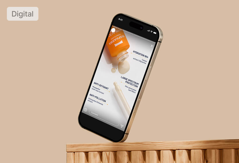 Tous les supports respectent l’identité visuelle de la marque et ses exigences du secteur dermo-cosmétique